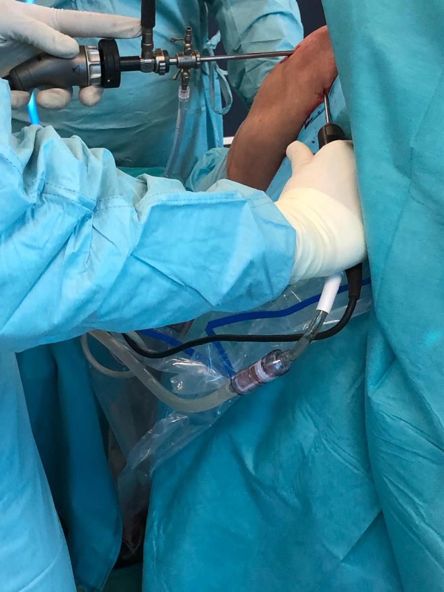 Na kraju operacije je aplicirana i sama plazma bogata trombocitima (ACP) u područje oko tetive m.supraspinatusa kako bi se bolovi nakon operacije dodatno umanjili. (slika 12)