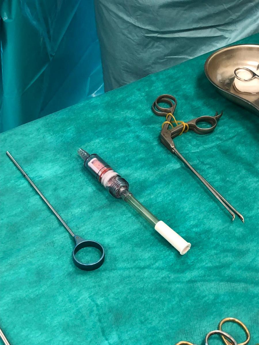 te se provuče kroz poseban filter za izvlačenje mezenhimalnih matičnih stanica iz sluzne vreće ramena (GraftNet) (slika 4). Tako pripremljeno tkivo pomiješa se plazmom obogaćenom trombocitima. (slika 5)